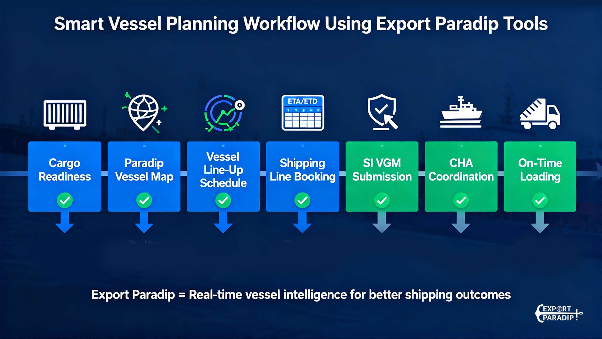 - Useful online tools like the Paradip Vessel Map & Vessel Line-Up Schedule to help exporters make informed decisions