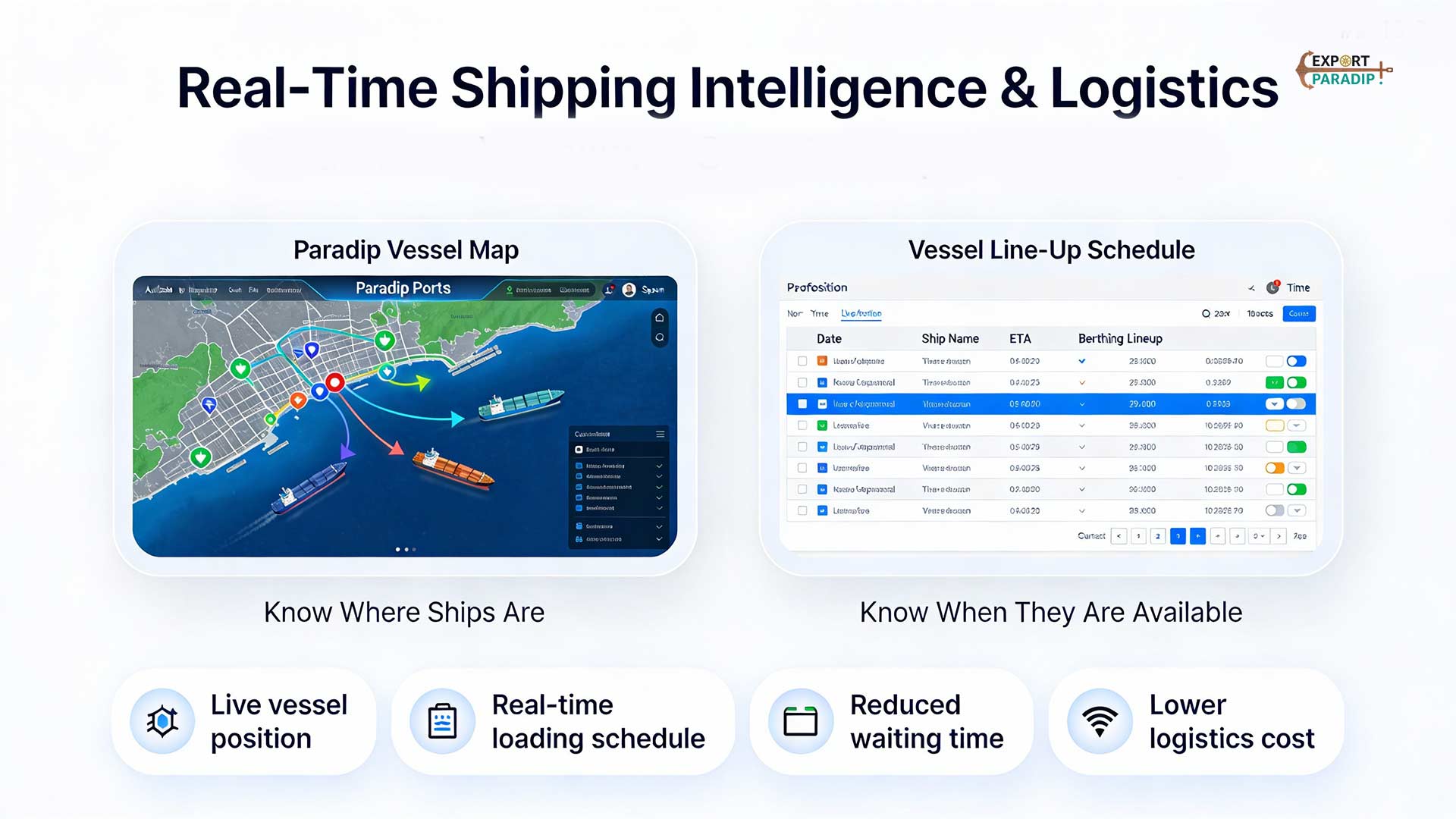 One of Export Paradip’s most valuable offerings is live port visibility, helping exporters plan shipments with accuracy & minimal delay.