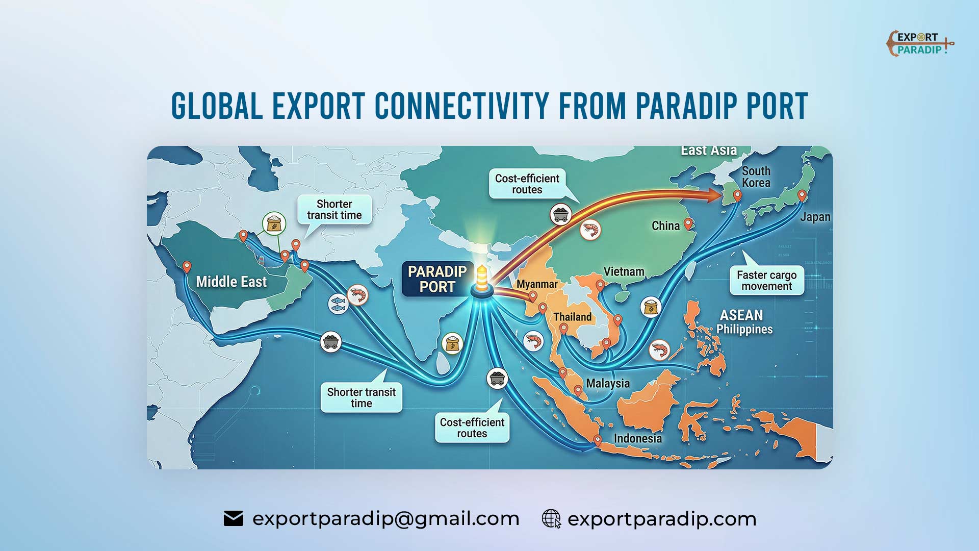 Paradip Port offers strategic geographic access to Asian markets, modern infrastructure & efficient cargo handling, helping exporters reduce transit time & logistics costs.